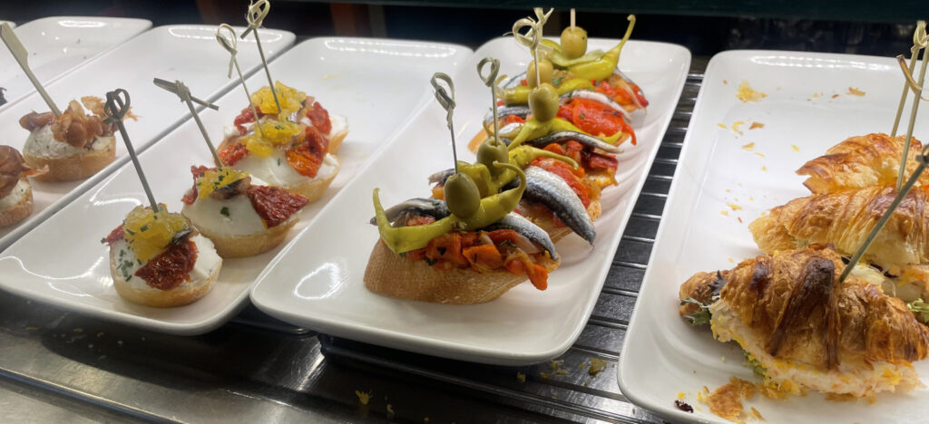 ガイドさんオススメのお店へ。たくさん並んでいるピンチョスの中から気に入ったものを2つ選べました。