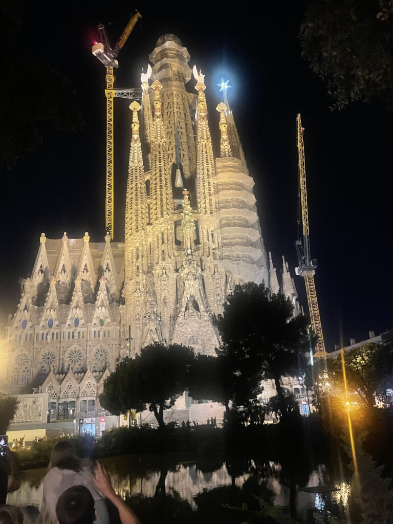 ご覧の通り、日中とは一変し、ライトに照らされた荘厳な外観はまさに圧巻で!ガウディ建築の幻想的な美しさを放ちます。